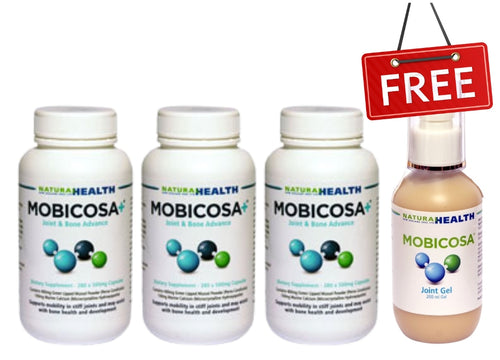 ☆SPECIAL☆ TRIPLE PACK Mobicosa+® Joint & Bone Advance Supplement 280 x 500mg Capsules + 1 FREE Mobicosa® Topical Joint Gel 200ml