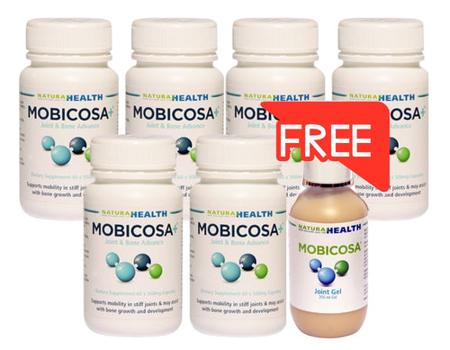 ☆SPECIAL☆ SIX PACK Mobicosa+® Joint & Bone Advance Supplement 60 Capsules 500mg + 1 Free Mobicosa® Topical Joint Gel 200ml